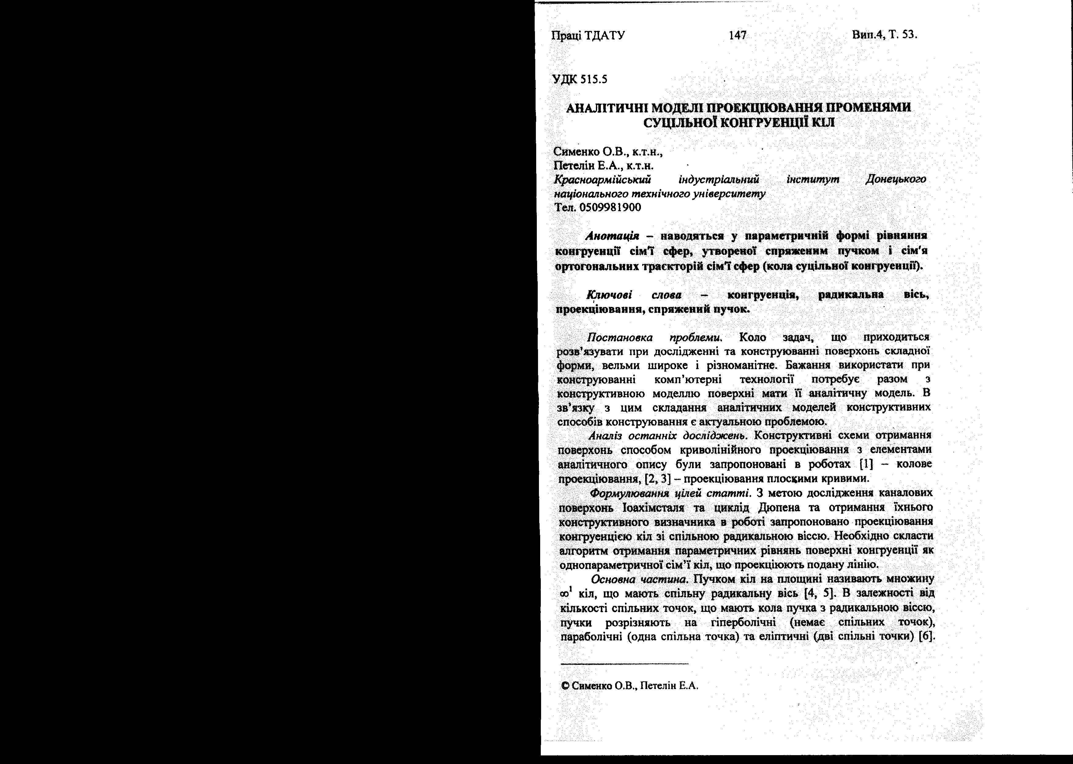 Библиографическое описание: Наукове фахове видання. Праці Таврійської державної агротехнічної академії. Випуск 4. Прикладна геометрія та інженерна графіка. Том 53. Мелітополь, 2012р., С. 147-152