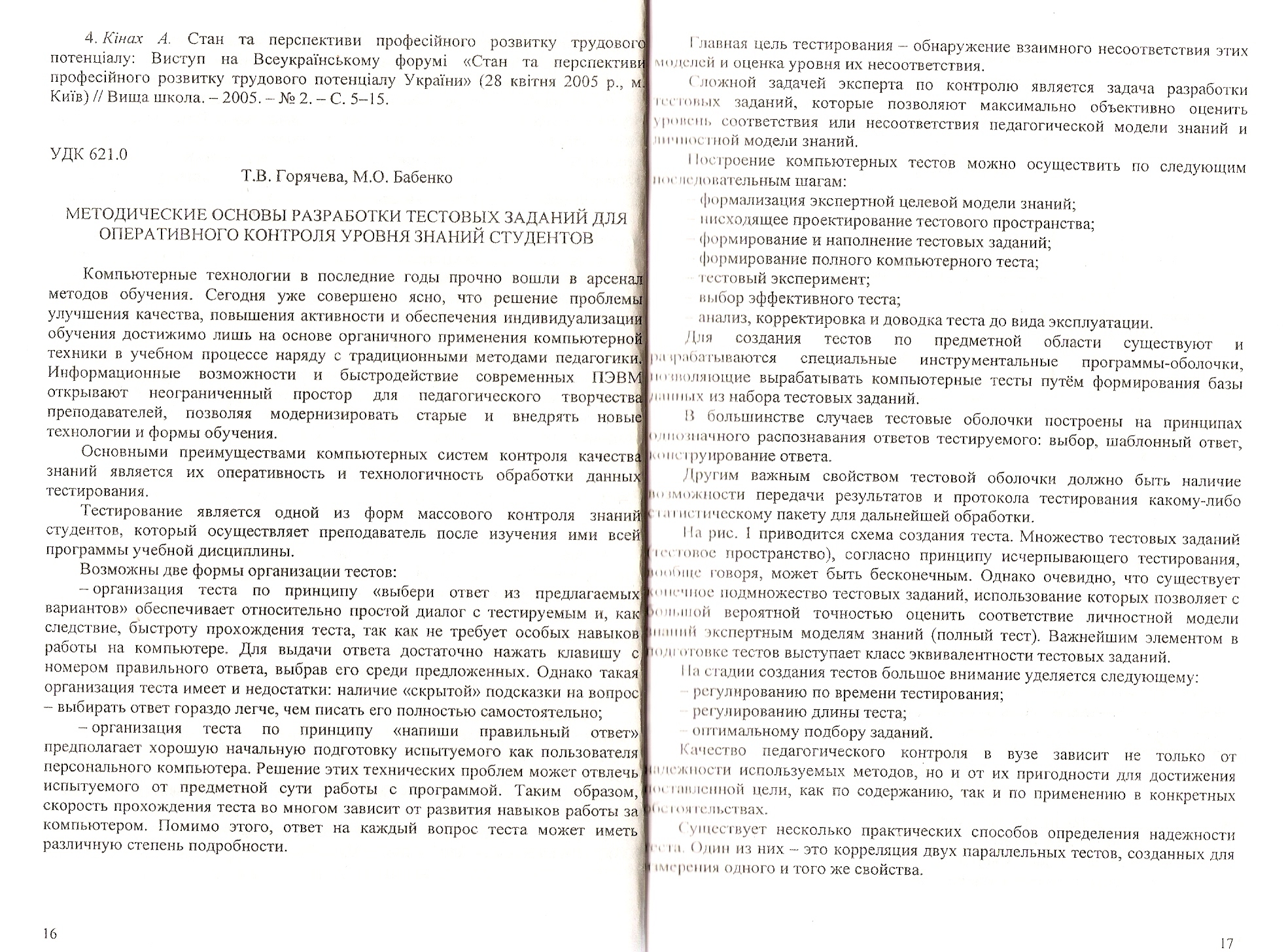 | Библиографическое описание: | Т.В.Горячева, М.О.Бабенко. Методические основы разработки тестовых заданий для оперативного контроля уровня знаний студентов. //Известия ТРТУ-ДонНТУ. Материалы Пятого Международного научно-практического семинара "Практика и перспективы развития партнерства в сфере высшей школы". В 3-х кн. - Таганрог. Изд-во ТРТУ. Кн. 2. 2006, № 6. - с.16-19 |