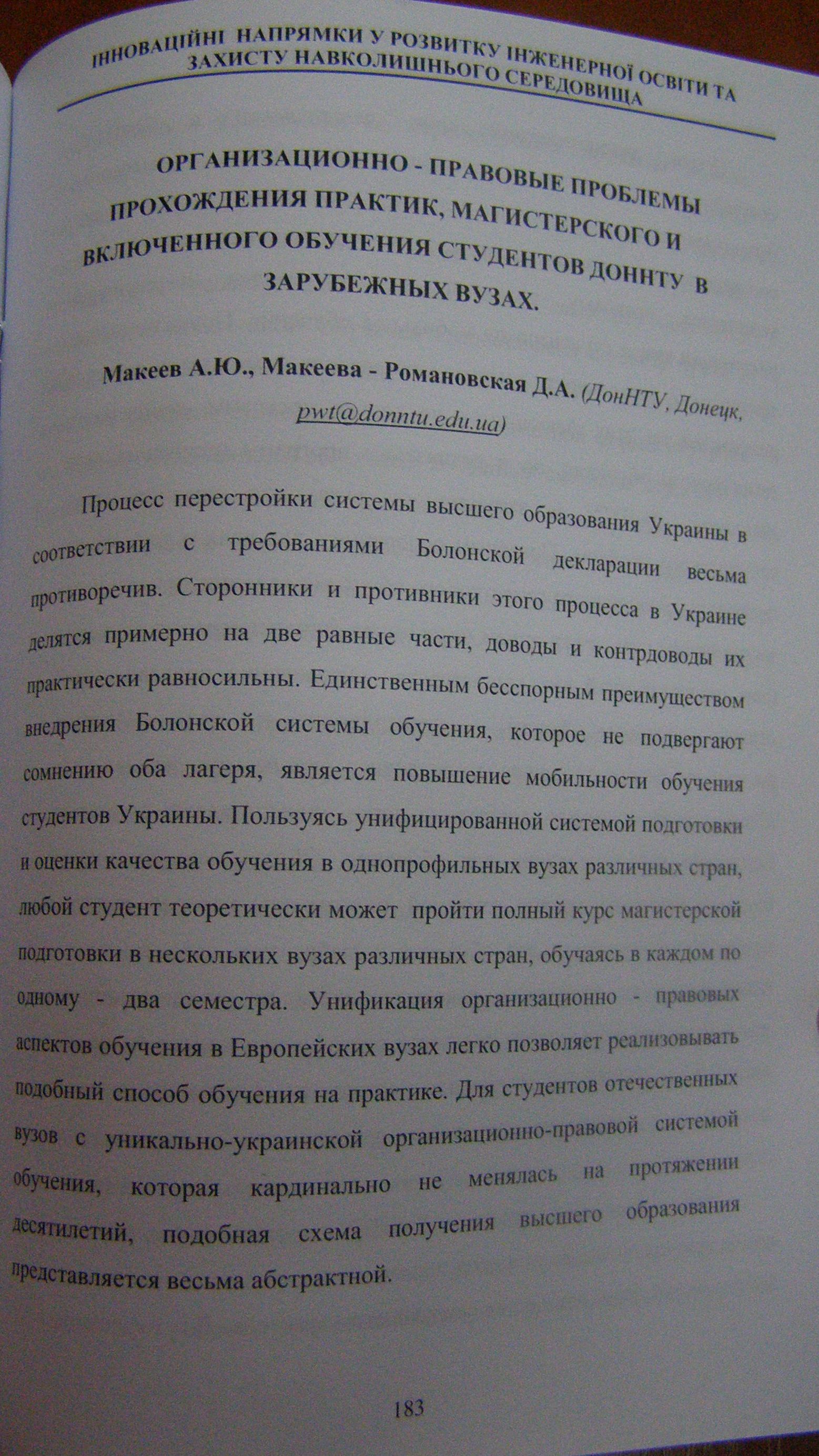 | Название: | Организационно-правовые проблемы прохождения практик, магистерсого и включенного обучения студентов ДонНТУ в зарубежных вузах |